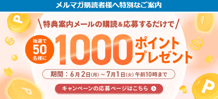 サイトでは公開されないメルマガ限定のキャンペーンが不定期で開催されることがあります。