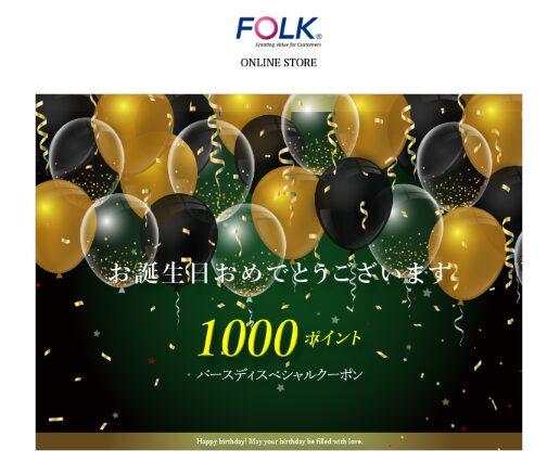 FOLK(フォーク)会員は、登録した誕生日に誕生日クーポンがプレゼントされます。