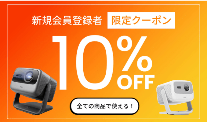 JMGO(ジェイエムゴー)に会員登録すると全商品に使える10%OFFクーポンが付与されます。