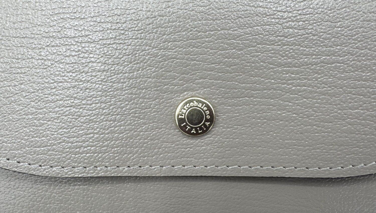 フラップを開けると、さりげなく刻印されたL’arcobaleno(ラルコバレーノ)のロゴが目に入ります。