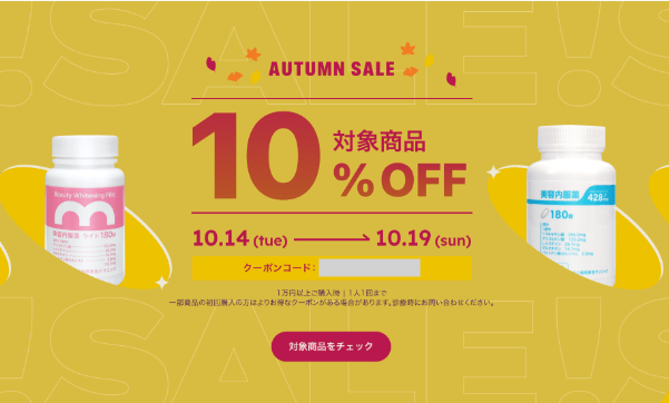 クーポンが配布されている場合、サイトのトップページのメインビジュアルに掲載されます。