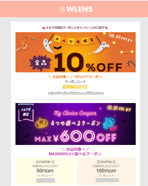 WLENSのメールマガジンでは、登録者だけが受け取れる「メールマガジン限定の割引クーポン」が配布されることがあります。